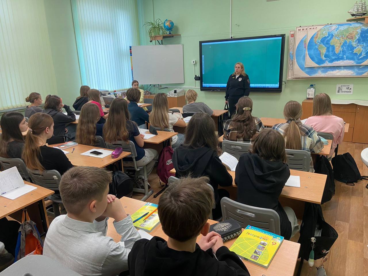 Инспектор разъяснила понятия «преступление» и «правонарушение», поговорила с учениками об административной и уголовной ответственности за совершение несовершеннолетними преступлений и правонарушений. Рассказала, с какого возраста наступает уголовная ответственность и какие наказания применяются за совершение преступлений.